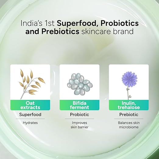Dermatologist developed | Powered by Superfood, Prebiotic & Probiotic | Cruelty Free, Vegan, Fragrance Free, Gluten Free, GMO Free | Suitable for sensitive skin | All good, no harm | Best of nature & scienceDermatologist developed | Powered by Superfood, Prebiotic & Probiotic | Cruelty Free, Vegan, Fragrance Free, Gluten Free, GMO Free | Suitable for sensitive skin | All good, no harm | Best of nature & science |